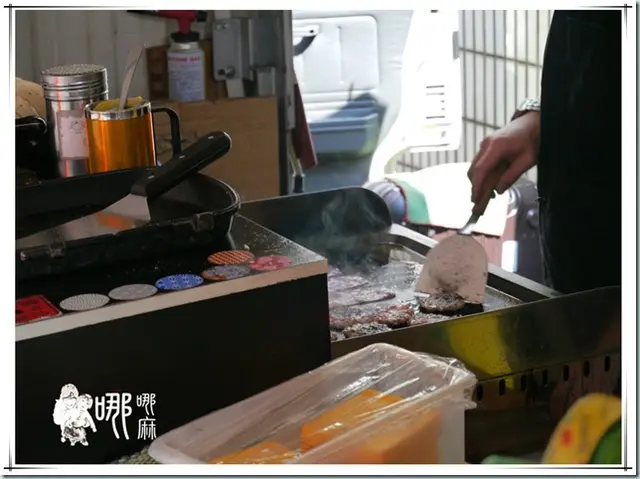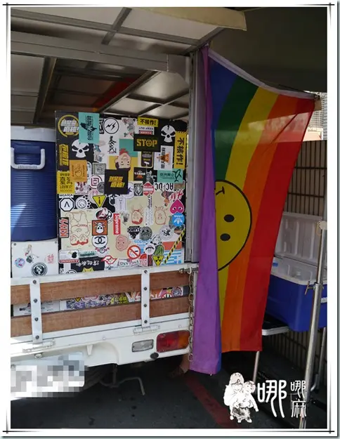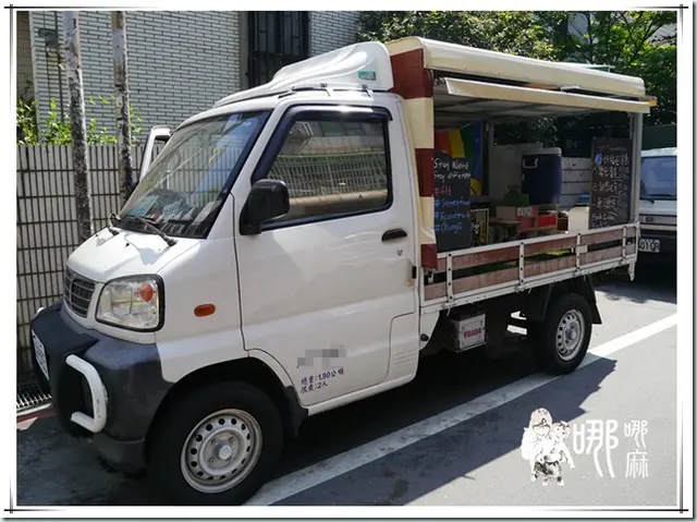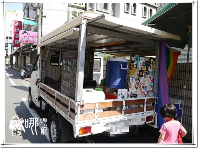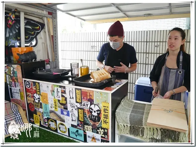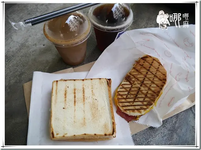 哪哪麻因為怕騎車餐點會晃到變形就先在旁邊找個地方拍照,
