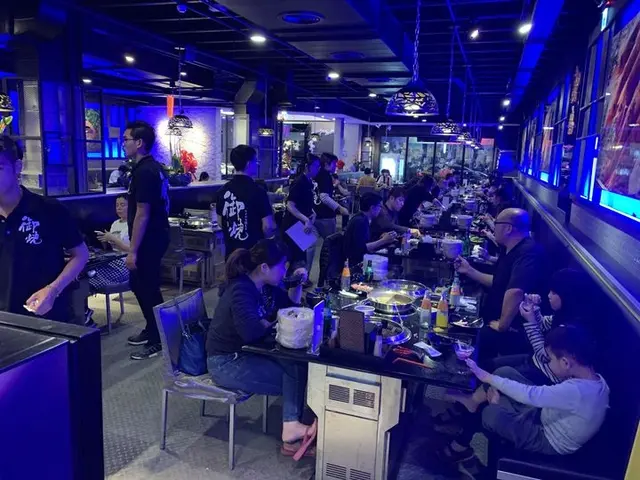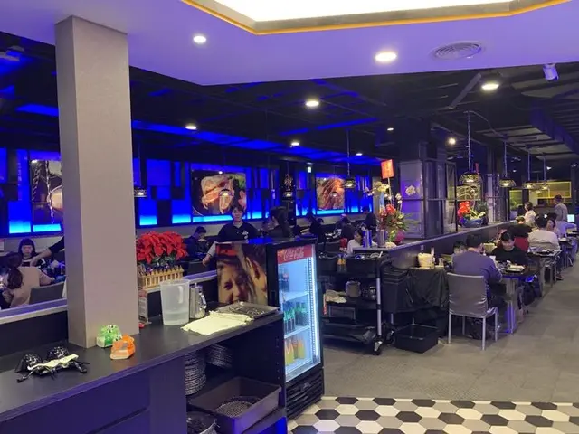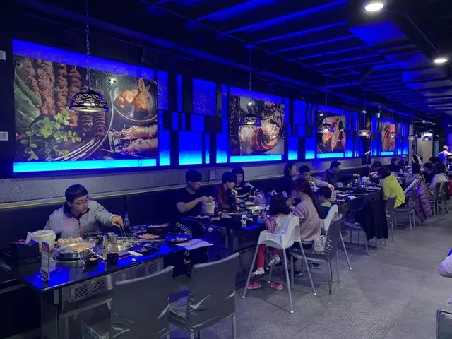 湛藍配上黑色調工業風格,搭配燒烤火鍋暖色格外吸晴