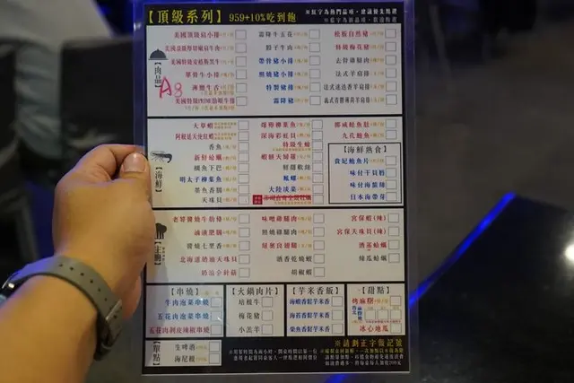 依喜好來選擇肉品、海鮮跟主廚推薦