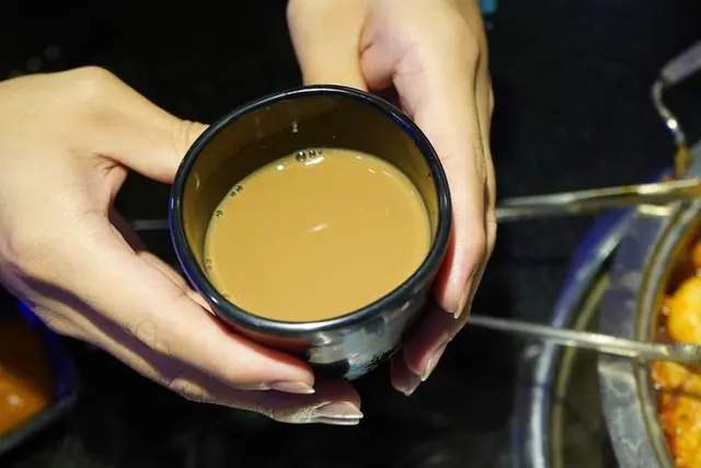 香甜的奶茶,朋友喝了不少杯配上火鍋燒肉他覺得很不錯