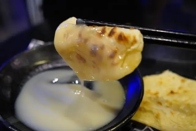 來回反面,最後再沾上煉乳配上餅皮的乳酪風味格外甜美