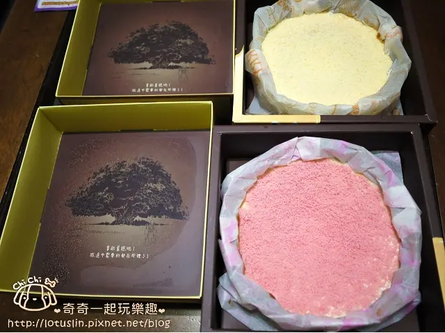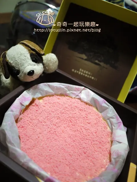 覆盆子融心乳酪蛋糕上層鋪得是少女粉色的蛋糕末,