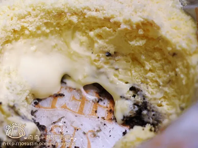 一入口就是綿綿密密的乳酪蛋糕,再往中間挖一點,