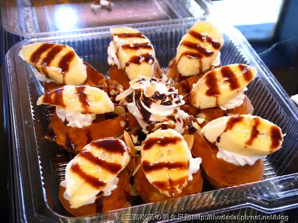 臨走前老姐帶了一個香蕉杏仁巧克力口味的鬆餅要給老母,