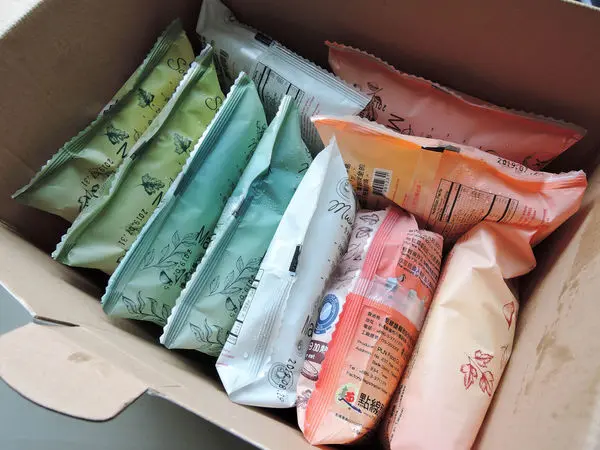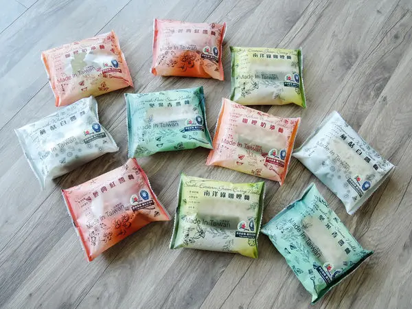 每一份包裝的正面都印有「有效日期」、「份量」、「注意事項」、「產地」,當然還有最重要的「口味」。