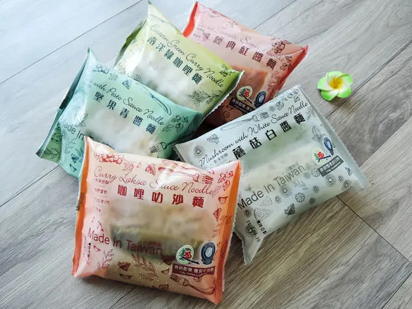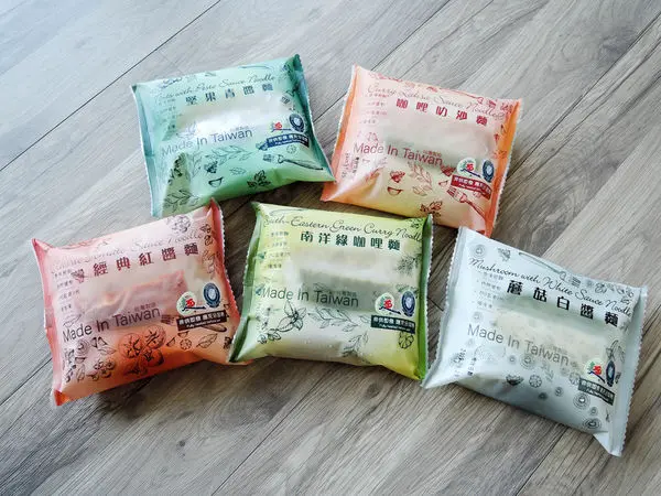 堅果青醬麵經典紅醬麵咖哩叻沙麵南洋綠咖哩麵蘑菇白醬麵,包裝精美、色澤分明。