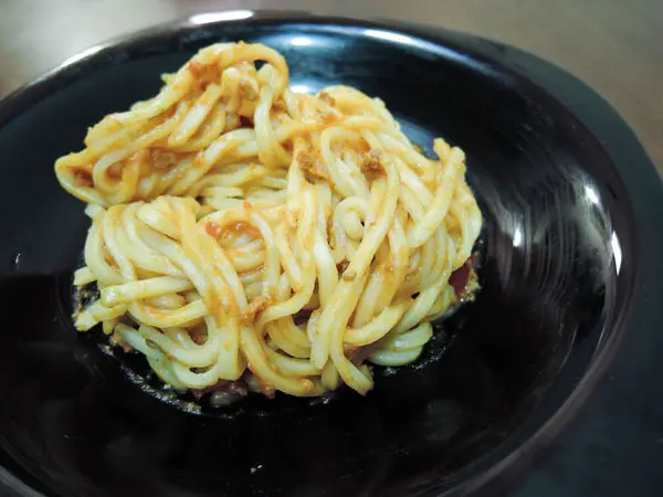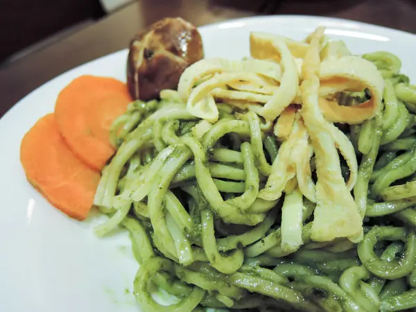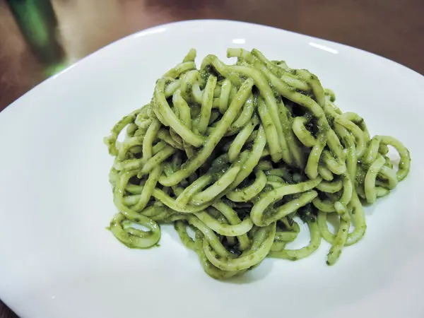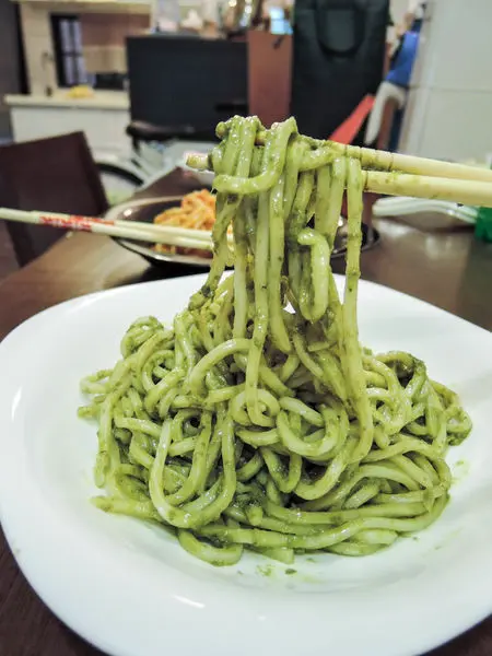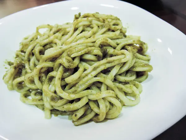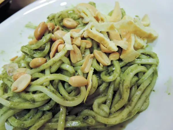 青醬包裡已有磨碎的堅果香氣,我覺得醬包的調製得宜,毋須額外再添加佐料,搭配彈牙的麵條,