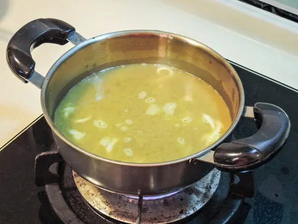 5種口味中唯有「咖哩叻沙」是「湯麵」,所以與其它4種口味的烹煮步驟略有不同,如照片所示。