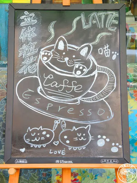 門口的黑板圖文是我此行的主要目標→拉花!誰不會被萌貓療癒!?