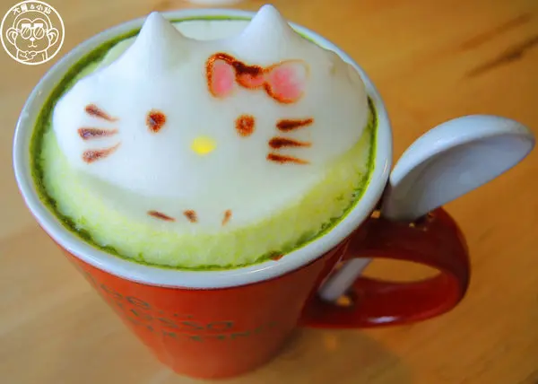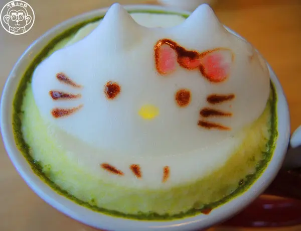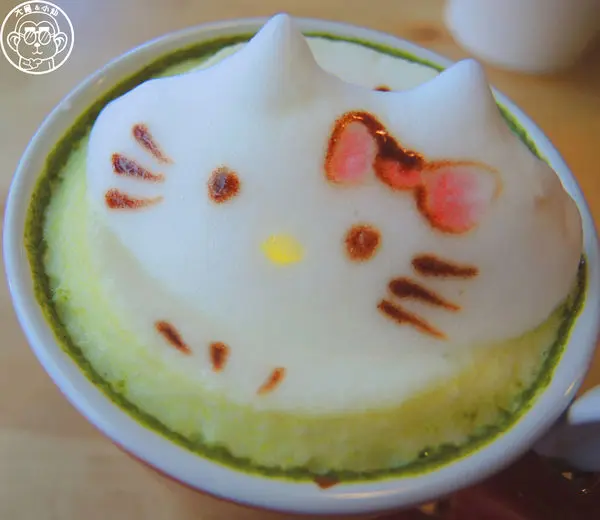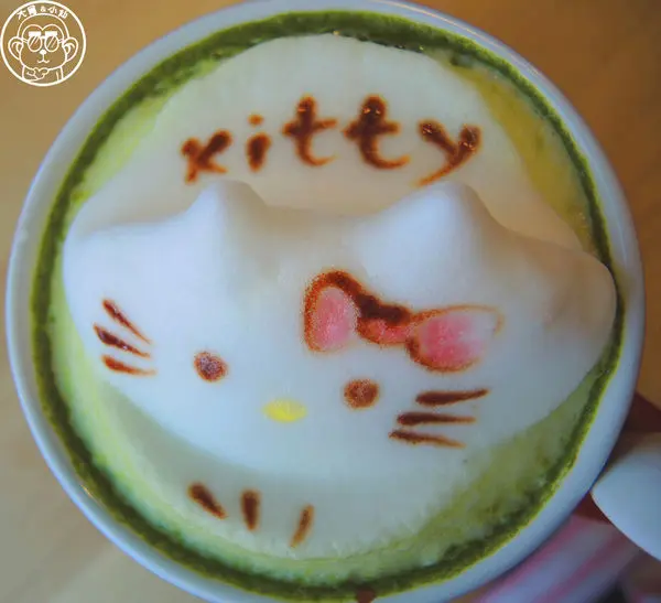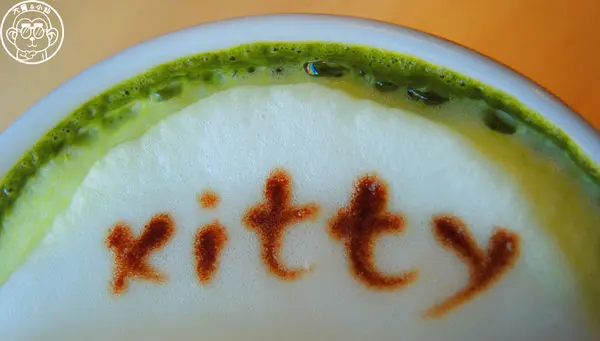 熱抹茶歐雷(90元)請店家幫忙拉無嘴女孩兒Kitty貓,杯身走質感路線