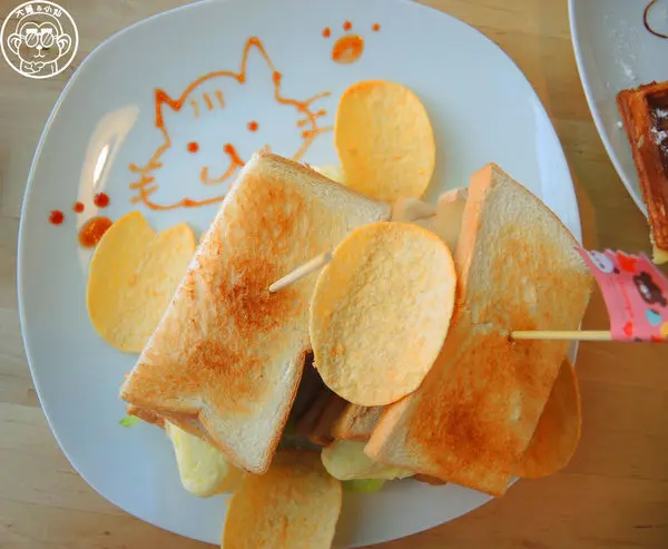 盤子上不留白的畫上小貓兒,陪你一起吃三明治