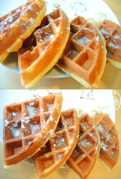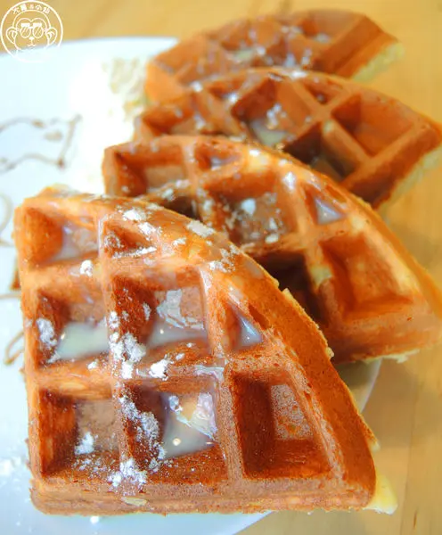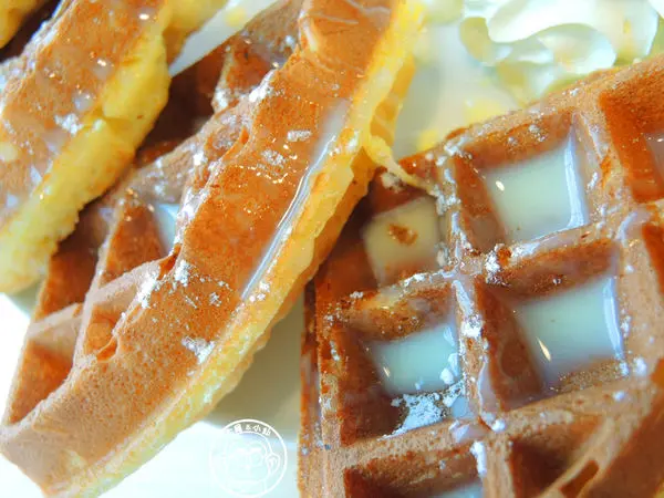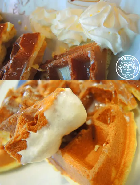沾一下鮮奶油更涮嘴,但鬆餅不是兩面皆烤到焦香,所以有點可惜