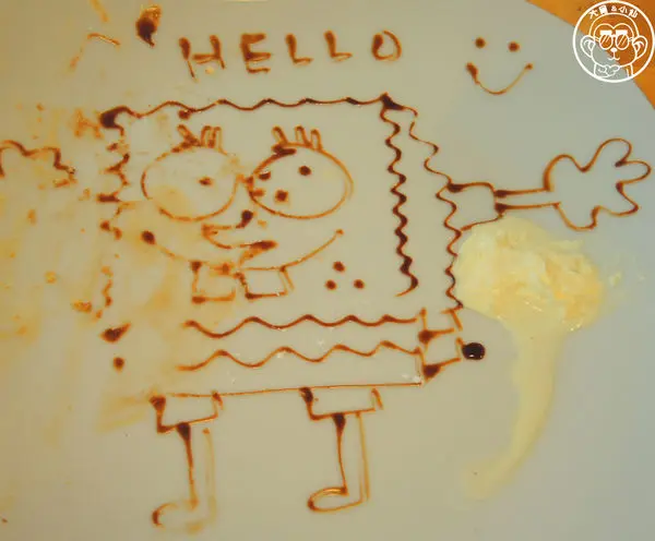 隔壁桌的餐點被畫上海綿寶寶,真的是好有才喔!