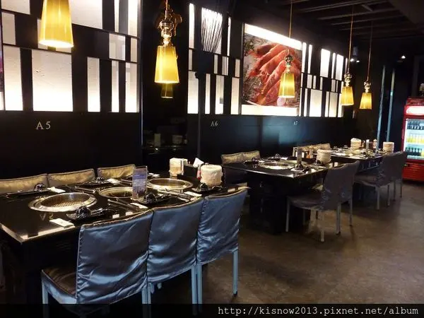 店內完全以黑色調為主,呈現精緻極簡的風格,桌上的烤爐都是用圓型凹槽方式,可能這種形式油煙會有所減少,除了凹型烤爐,還有火鍋爐子,可以享用火烤兩吃,店內區域廣濶,不論走路或是用餐都是寬大舒適,沒有狹礙的感覺.
