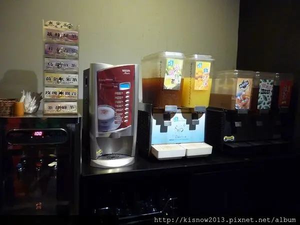 飲料方面也是相當豐富,除了兩種口味的冰沙,還有罐裝的可樂和汽水可以自由取用,這相當難得,因為其他的火鍋店或燒烤店,只要是罐裝可樂或碳酸飲料都要另外計費,這裡不只有冷飲部份,我差點錯過熱飲區,熱飲區包括咖啡,鴛鴦奶茶,甚至可以用茶包泡茶,我個人還是比較偏愛罐裝的碳酸飲料,不論雪碧,芬達或可樂都不想錯過.