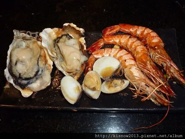 特級生蠔吃起來的口感鮮嫩肥美,質感柔軟細滑,可以吸吮流出湯汁,海味相當濃郁.大草蝦体型比天使紅蝦小,体型算是中等,經過火爐炙烤,吃起來的口感,肉質較少,雖然稍具彈性,但不如天使紅蝦,仍然保有鮮甜的滋味.
