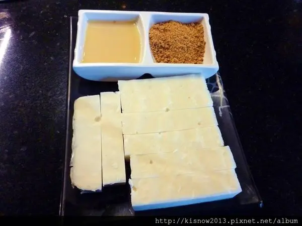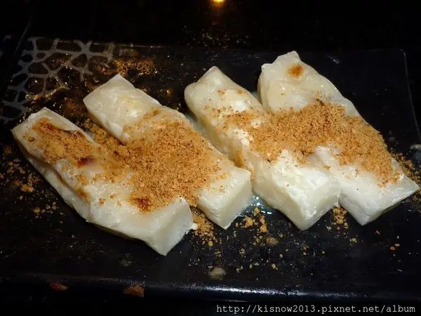 烤麻糬是這家店唯一一道用火烤方式的甜點,我感覺這家店火烤的甜點太少,烤麻糬只有簡單的煉乳和花生粉調味,麻糬原本是白色長條狀,放入火爐炙烤,要相當有耐心幫它翻面,否則它會容易烤焦,麻糬原本質感較硬,隨著熱度變軟,也變得膨脹起來,此時趕快把它放在盤子上,灑上花生粉和煉乳就可以享用了.吃起來的口感溫熱軟綿,帶有沾黏性,沾上花生粉和煉乳增加濃郁的甜度,吃起來更為香甜.