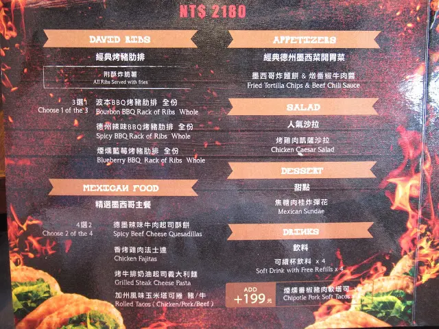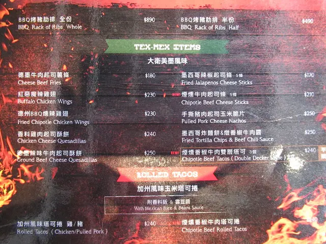 BBQ烤豬肋排 490元/半份 德墨辣味牛肉起司酥餅 250元