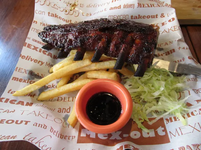 膩口。肋排除部份外圍烤得稍乾硬外,肉質大抵軟嫩美味。盤上還