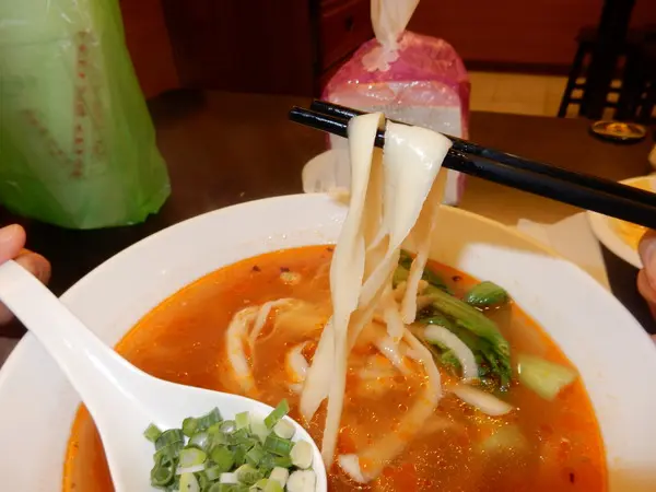 紅燒湯麵挑了刀削麵,麵條嚼勁自然更棒。紅燒湯頭不死鹹,味
