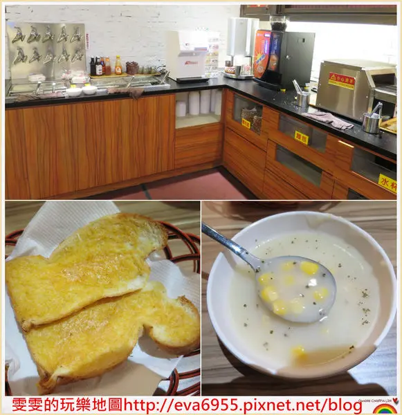 自助區的部份有著麵包及湯品飲料,可隨意取用