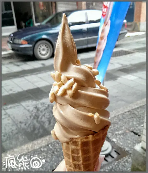 一般是會來個餅乾棒,這個直接灑上古早風的爆米香,吃起那霜淇淋還真的有特別的懷舊感耶,口味上好似麵茶類的東西,所以俺思緒就被拉到小時候了XD,甜度算是不太高啦,吃來也還算爽口乳脂含量不會太過,算是我喜歡的爽口感。