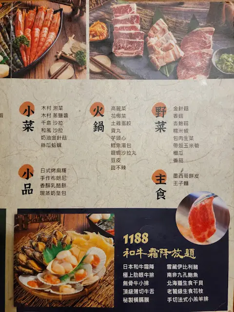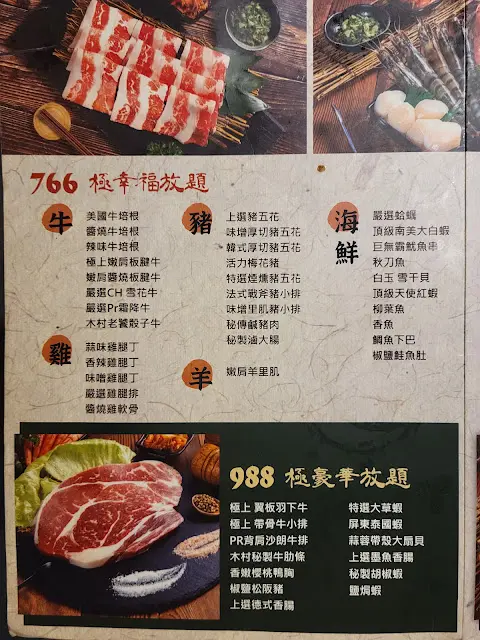 這裡走吃到飽路線,分成三個價位,為766、988及1188元