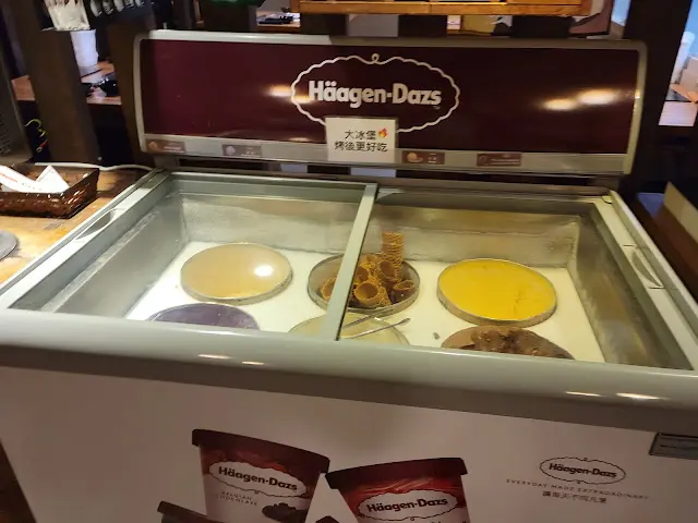 冰品有哈根達斯和霜淇淋機,哈根達斯冰櫃裡有大冰堡,