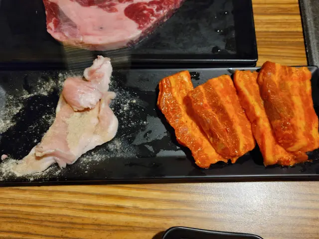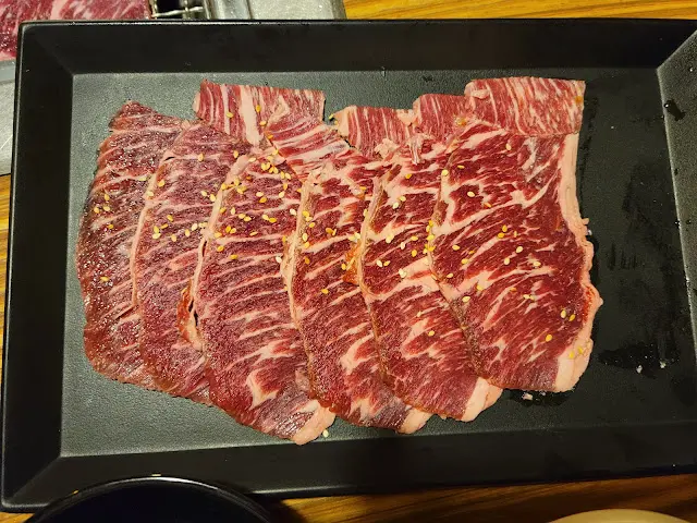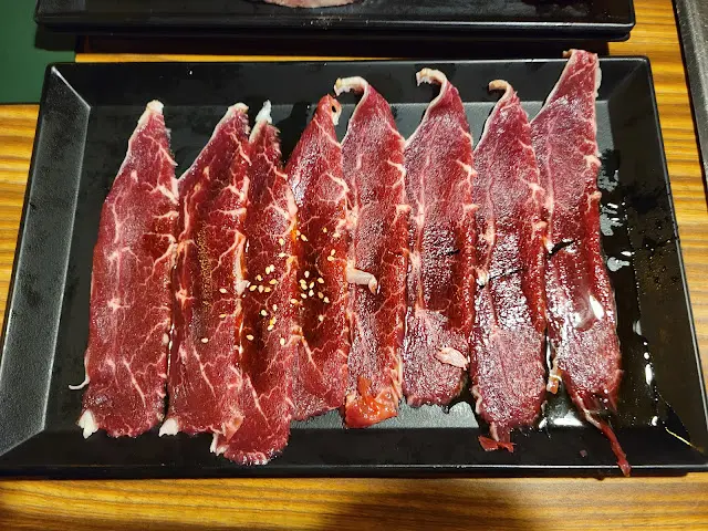 肉品點了嫩肩醬燒板腱牛、嚴選Pr霜降牛、極上翼板羽下