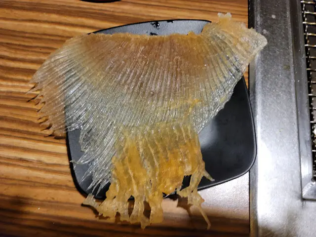 墨魚香腸、秘製胡椒蝦、魟魚翅(這個實在不會烤,烤失敗沒
