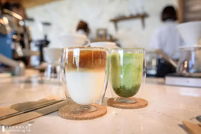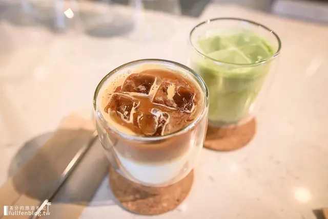 耶加雪菲單品拿鐵 $160 抹茶拿鐵 $180