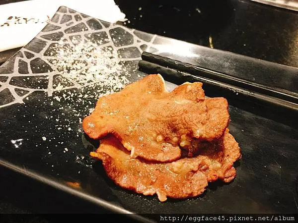薄片狀的牛舌,經過燒烤逼出油脂後,香味逼人,