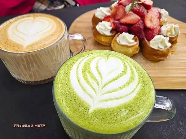 草莓山鬆餅、抹茶歐蕾、榛果拿鐵
