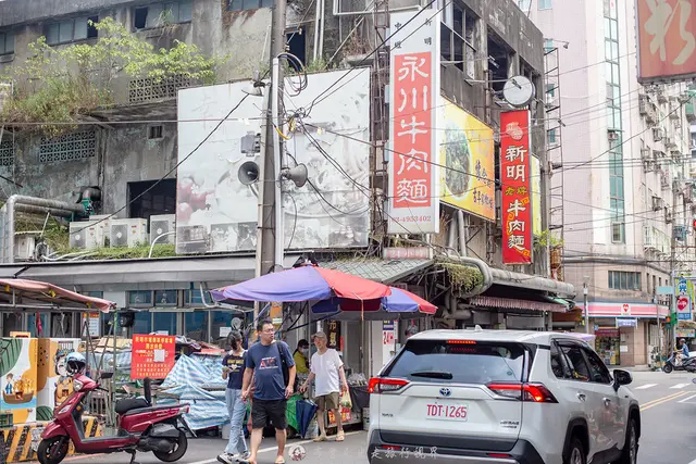 《永川牛肉麵》位於中壢民權路上,雖然叫路但路小得像是巷子,旁邊又是菜市場,附近超難停車的,建議停新明市場停車場,騎機車的話旁邊更小的巷子就有位置可以停,民權路上應該算是中壢牛肉麵一條街,《永川牛肉麵》旁邊是新明老牌牛肉麵,再往後一些是中壢牛肉麵,《永川牛肉麵》算很猛的,在地超過60年以上的歷史,也有人說是中壢第一家。