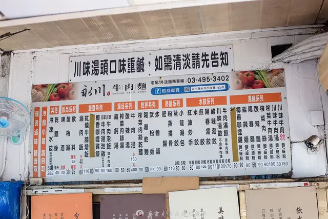 永川牛肉麵菜單上可以看得到不是只單單賣牛肉麵而已,還有好幾種湯麵跟乾拌麵,也有水餃可以選擇,招牌必點就是川味牛肉麵,湯頭口味是偏重鹹,可以調整重鹹,要清淡也可以先說,另外可以免費加湯加麵一次,絕對會讓你吃到超撐的,小菜滷味都在冰箱,都可以自己去拿。