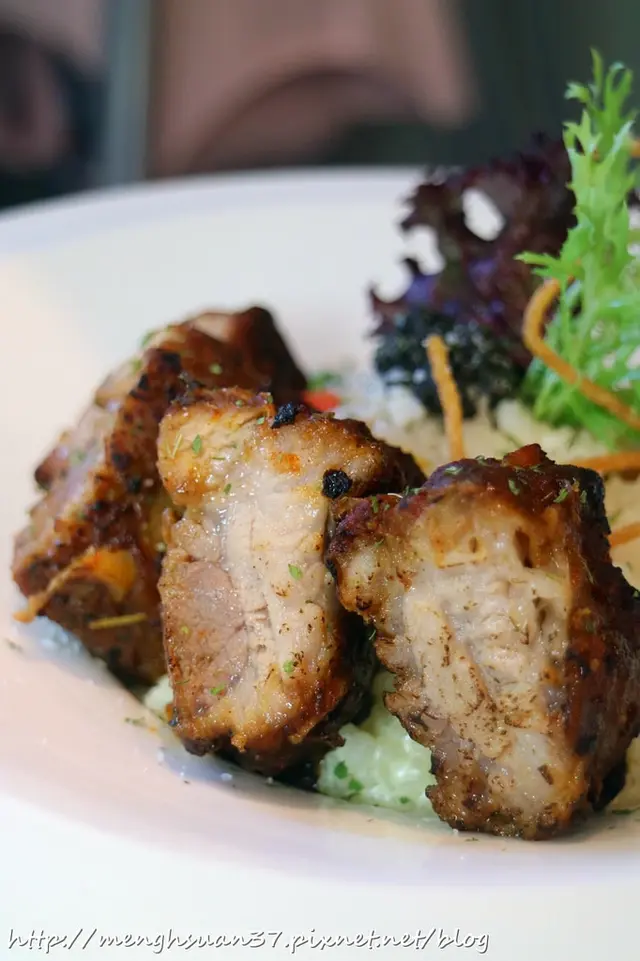 燉飯讓我意外,處理的不錯!米飯還保留一點米心,如果真的不喜歡吃有口感的飯,可以先告知服務人員,可以做調整。原本很擔心奶油白醬吃到後面會膩口,沒想到這道餐點不會讓人越吃越噁心!豬肋小排調味剛剛好,不過鹹但又有入味,而且肉質不難咬,很怕吃到豬肋排像橡皮筋那樣(笑)