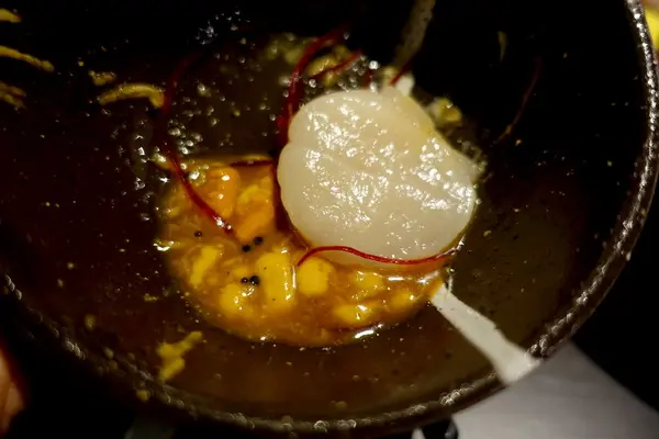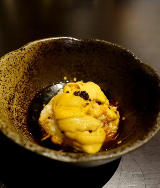 輕盈寶寶把干貝放入剛剛捨不得那麼快吃完的海膽裡