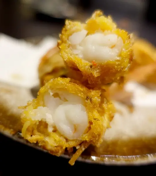 炸大明蝦是蝦肉狠多..外層用地瓜絲包覆!