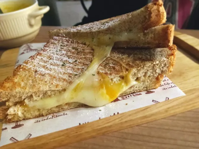 朋友點的經典烤三種起司。熔岩般的起士流出帕尼尼,才上桌就讓人大飽眼福,至於好吃與否,我也不知道