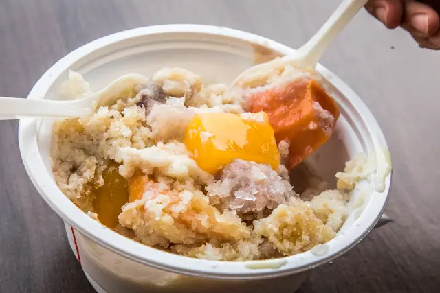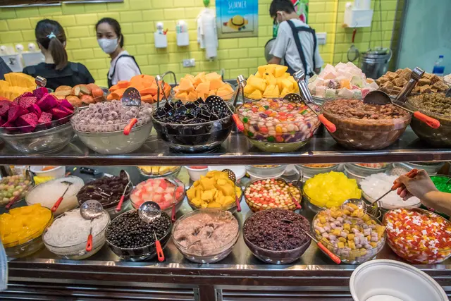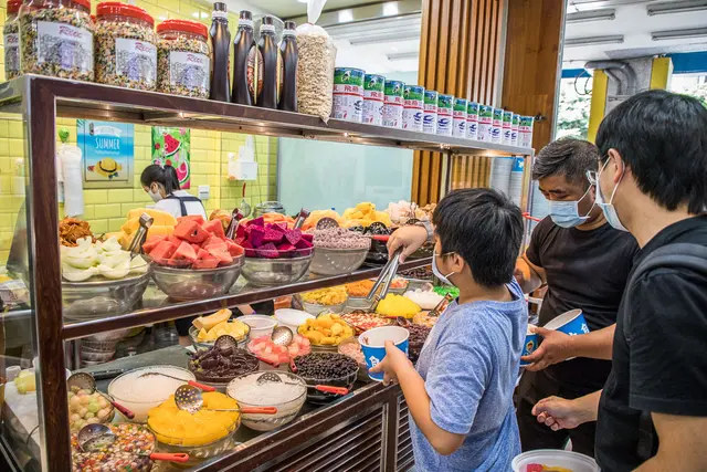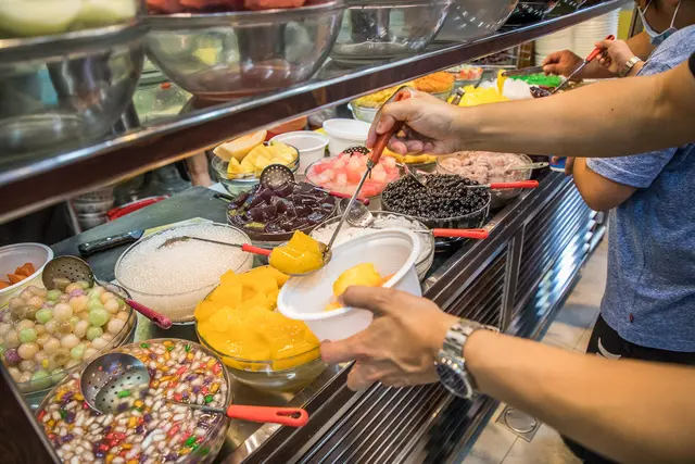 鉅大自助冰點餐方式是自助式的,愛吃什麼料自己夾,建議可以多夾點水果,因為生意很好,水果類幾乎不太會囤貨,所以新鮮度都很棒,再搭配一些豆類或是粉粿,鉅大自助冰城的冰料真的有夠多,一時之間真的很難下手,不知不覺就會夾很多