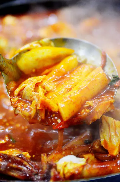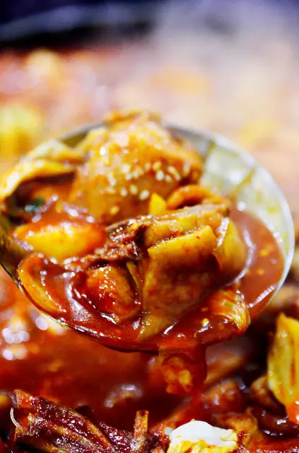 我終於吃到春川雞了,春川是地名吧!?這盤紅通通的料理在寒冷的天氣看起來格外溫暖