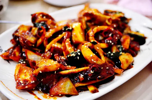 感覺就是春川雞海鮮版,只是口味就沒雞那麼重,吃起來花枝的鮮甜味都還感覺的到