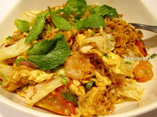 拌入新鮮薄荷葉搭配蝦仁、蔬菜跟蛋的口味我很喜歡喔!