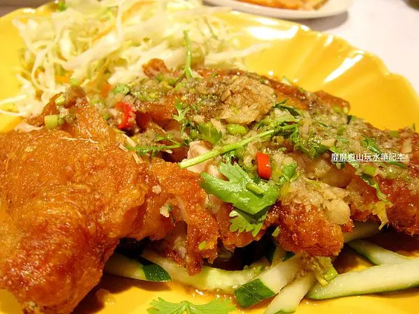夏天新菜色~酸子辣汁炸鱸魚~480元