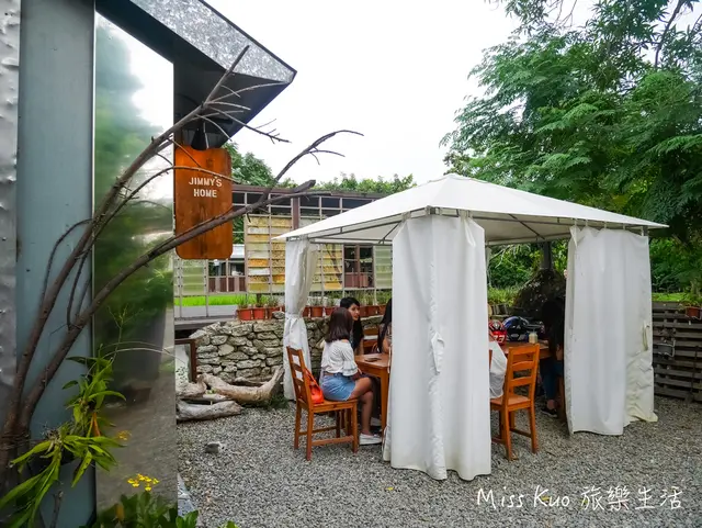 Jimmy's Home 吉米.夢 綠食咖啡《高雄。橋頭》|電話 07 611 0732|體驗時間 106年10月01日|地址 高雄市橋頭區興糖路4巷1號(捷運橋頭糖廠站2號出口 步行約五分鐘)|營業時間 下午1400至1800【Jimmy's Home 吉米.夢 綠食咖啡】位於橋頭糖廠戶外婚禮「白屋」旁,基地小小的,但因本身的鐵皮建築外觀,搭配樹林及戶外美式帳篷,成了近期高雄火夯的森林系午茶景點。這天約莫傍晚四點抵達,無論是室內座位區,還是小悶熱的戶外座位區,皆是一位難求!我們在等待座位時,顧客們還是絡繹不絕的前來,可見其熱門程度。(照片是刻意等到打烊前才拍的環境照)傍晚時,蛋糕冰櫃內的甜品已所剩無幾,熱賣的檸檬塔當然已經銷售一空瞜!切記要早點來唷!辛苦的店員女孩們一直走來走去的,人客們需要有點耐心,畢竟來到此就是要放空休閒一下。(當天看到有許多客人一直反覆去詢問餐點進度,感覺忙不過來)這次點了布朗尼冰淇淋蛋糕以及鮮奶茶,由於人客實在太多,因此我們等候了約有一個小時之久唷!在等待的同時,可以先拍拍照,玩一下相機瞜!這天,發現有許多人客也帶著自家的毛孩子一同前來,讓毛孩互動一下也不錯。餐廳內角落有許多小巧思,如乾燥花、復古家具的陳設,也有販售著自創的明信片及日系碗盤商品等。總而言之,【Jimmy's Home 吉米.夢 綠食咖啡】是個小巧可愛的復古午茶店,來到橋頭糖廠遊玩,可以順道繞過來享受一下現場的森林氛圍唷!Jimmy's Home 吉米.夢 綠食咖啡《高雄。橋頭》|電話 07 611 0732|體驗時間 106年10月01日|地址 高雄市橋頭區興糖路4巷1號(捷運橋頭糖廠站2號出口 步行約五分鐘)|營業時間 下午1400至1800 創作者介紹 Miss Kuo Miss Kuo 旅樂生活…Read More
