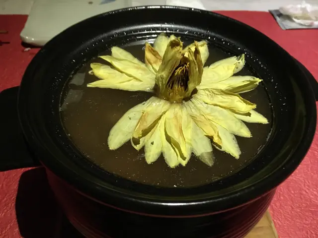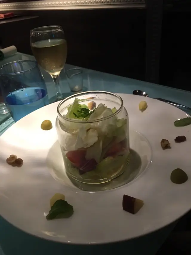 這是一間冇菜單的餐廳,入內的人都是吃套餐的。這餐廳有點遠,要乘捷運到新店,再轉乘出租車約180台幣去。建議中午去,窗外的景色不錯。這套餐在台灣吃大概是300多港幣,但若果在香港吃以這樣的環境和食物質素肯定要800。每一道菜都像一幅畫,賣相精美。在眾多的菜當中以下是我較喜歡吃的:🥗生魚片沙拉生魚片相當新鮮,吃起來爽口又紮實,下方有鮮蔬,清脆的蔬菜搭配著生魚片一起吃,變得更有口感。🥗糕渣是宜蘭的著名小吃,糕渣非常燙口,搭配翠綠的蔬菜濃湯,綿密又濃郁,味道挺好的。🥗烤明蝦、蔬菜拼盤蔬菜拼盤有茄子、南瓜、四季豆等,吃起來油感稍重,烤大明蝦肉結實,很美味。🥗蓮花雞湯這道湯品彷彿是藝術一樣,服務人員會把蓮花放在雞湯上頭,而蓮花會在湯品上慢慢綻放,令人驚喜。雞湯的鮮甜在嘴裡蔓延,非常順口。湯料也非常多,有蓮藕、蓮子、筍子等,一道出色的料理。…Read More