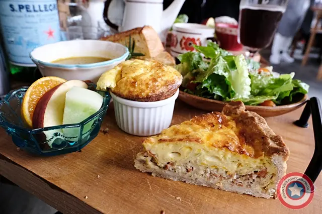 每次從國外回到台灣第一件事就是想要尋找自己最喜歡最熟悉的古早味早餐而早餐裡最吸引我的產品就是蛋餅了[人生硬著幹,蛋餅軟著吃]一走到門口吸引我的目光的,是他的春聯以時下流行的文青風咖啡廳風格在繁華的信義區裡打造了一個屬於粉漿蛋餅的小天地當天為自己一個人前來幸運的我抵達的時間店裡並無太多人隨意找了個舒服的窗邊位置坐下不下10幾分鐘的時間 店裡已陸續地坐滿了人店員很熱情地送上菜單後 告知決定點餐時直接到櫃台點單付款即可除了粉漿蛋餅以外 還有販售迷人的古早味飯糰 蘿蔔糕等小食有著選擇性障礙的我非常後悔怎麼只有一個人來造訪呢菜單上的每一種口味我都好想嘗試貪心的我最後選擇了九層塔蛋餅搭配套餐更貪心的+15元起司蛋餅+65元可以任選一個點心,並可以選擇30元的飲料(超過需補差額)奶茶控的我毫不猶豫地選了鮮奶茶因為超過了30元所以補了差價5元(回台灣吃早餐就是要配奶茶啊!)好喜歡他們的訂製馬克杯LOGO的設計雖然單純 但看了很舒服簡單就是質感等了一會兒餐點終於到齊啦迷人的橘黃色蛋餅亮麗的在我面前粉漿蛋餅皮有著滿滿的青蔥 煎得稍微酥脆的口感超級滿足在嘴裡滿開的九層塔香以及濃郁的起司早餐能吃到這個真的好幸福但因為粉漿蛋餅本身就有些許鹹味所以我並沒有沾取店家自製的醬料一起食用很大方的地瓜薯條感覺像是自己切的那樣不是外頭裹了很多粉去炸的我喜歡這種像是小時候爸媽在家削地瓜皮切條直接炸的口感其實傳統蛋餅在每個人的心中一定都有著不一樣的模樣有些是這種粉漿蛋餅或是眷村裡的手桿蛋餅抑或是一般美而美的那種蛋餅不論是哪種的蛋餅在每個旅人心裡都佔有著一席之地吃到這蛋餅時,心裡真的會有一種感覺「啊!我真的回家了~」…Read More
