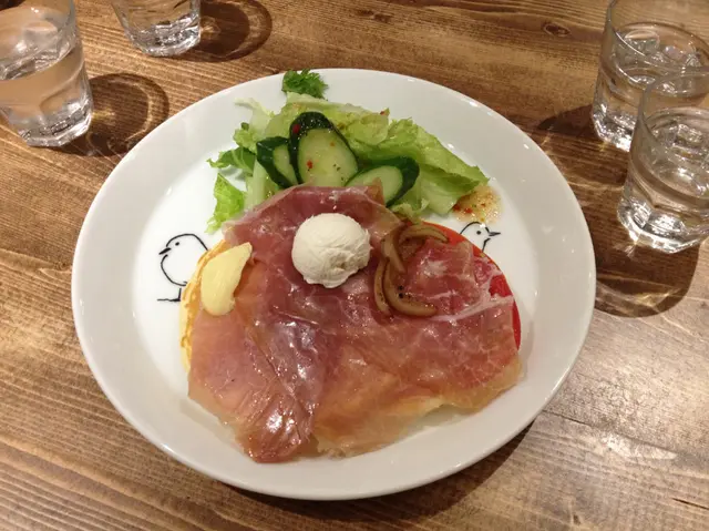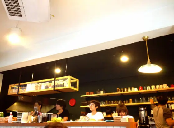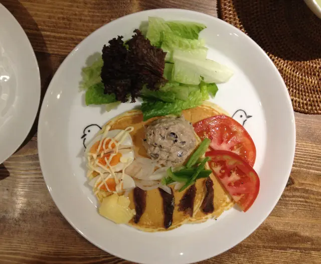 但是店員到是很親切, 果然是日系的店家裝潢風格沒有像坊間下午茶一樣很少女, 反而是走簡單、設計的路線用餐環境因為座位都以沙發區呈現, 因此跟隔壁桌的很近, 我都可以加入隔壁桌的對話內容了!!因為有名的是鬆餅所以大家甜點都點一樣的"雙層鬆餅"失望的是, 鹹點的選擇很少, 也都是煎餅類的鬆餅為主, 沒有提供其他項目~有可能是因為我們在一開幕時不久就來光顧, 所以餐點的選擇上比較不足鹹點的部分,我們點了培根鬆餅、鮪魚鬆餅培根的話,就是死鹹, 沒有其他的感覺倒是煎餅表現得很好, 吃起來鬆鬆軟軟, 不會甜甜的~ (個人不喜愛吃主餐鹹點時, 吃到甜味, 太可怕了)