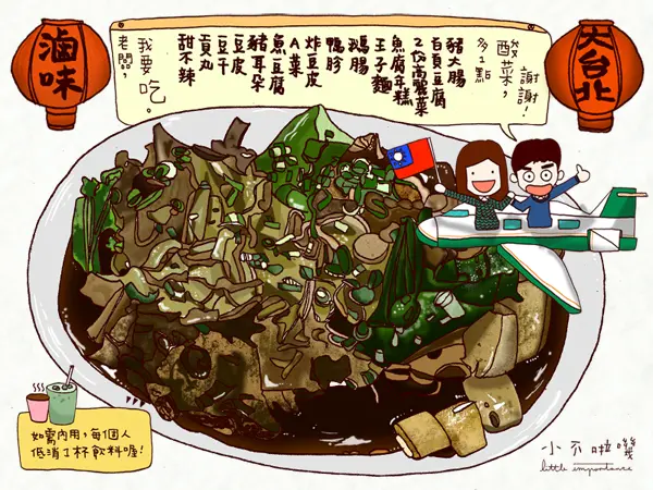 雖然師大夜市縮小了很多很多 不過每次去台北還是要去師大 是情義結也好 是念舊也好反正就是要跑1次師大才叫有去過台北哈哈相信大家都對師大夜市很熟悉了吧 絕對是有得吃有得逛的好地方這次呢當然是要介紹每次都1定要把滿滿1盤塞進肚子的大台北熱滷味!!大台北滷味的門口永遠都是在排隊的 不管是夾滷味或是等滷味的反正都站滿滿的 不管是客人或是店員 反正都是在忙碌著的樣子 要吃熱滷味前 首先呢就是要把你要點的菜都夾進盤子裡熱滷味攤子都是用自助形式的 你想要吃甚麼 就給它夾進去就對了!!必點的是豆腐製品 不管是油豆腐、豆干、豆皮、魚豆腐、百頁豆腐 反正就1直夾好了因為當豆腐把湯汁都吸進去之後 真的是人間美味啊!!接下來的就是甜不辣、豬耳朵、鴨胗,魚腐年糕、豬大腸、貢丸等等都是每次來都會不顧1切夾進去的 其實 喜歡吃甚麼就夾甚麼就對了因為1定會把它們都掃光光的 最後嘛 當然要放王子麵和高麗菜 沒放這兩樣的就不要說有吃過熱滷味喔!!都夾完之後呢 就是等待煮熟的過程了 這時候呢 和朋友們可以分頭行事了 因為大台北滷味可以坐著吃的 前提是到旁邊的飲料店每人點1杯飲料就可以內用了 1個人等著滷味 其他人就可以先去找位置和點飲料了等拿好自己的那份滷味就可以直接去吃啦!!我們最愛吃他們家的酸菜 所以最後都會叫老闆多放1點哈哈開動吧!!!迫不及待的放進嘴巴裡吧!!!!每1次回來 都能吃到第1次來吃的那種味道、那份感動、那種開心大台北滷味 來師大的你們絕對要去嘗嘗!!!!…Read More