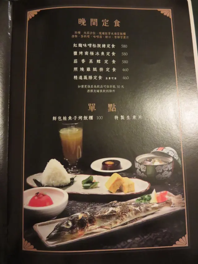 來到了國立臺灣大學教授馬廷英的故居,欣賞各類洋和式建築設計之餘,在餐廳內點了鹽烤南極冰魚定食和紅麴味噌松阪豬定食。頭盤水茄沙拉,很新鮮。定食配胚芽米海苔飯糰,有咬口很好味道
